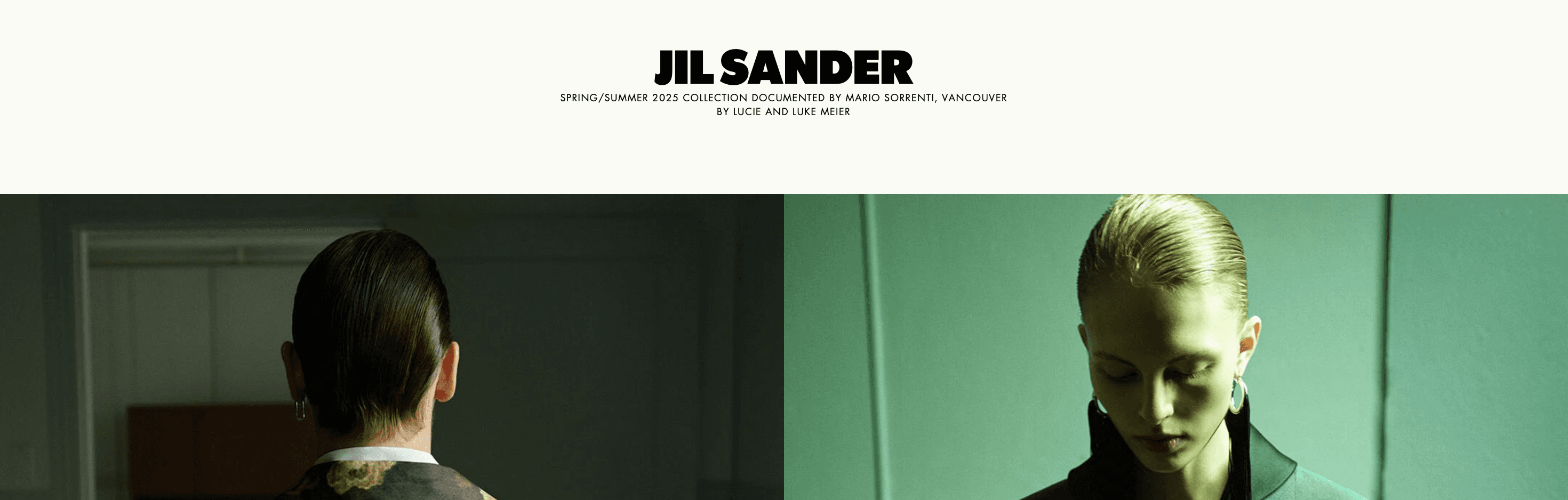 By creating a unique design that highlights the boldness and elegance of wearing Jil Sander's clothing, the website shows how even distinctive pieces can make a strong statement within a minimalist framework. This approach successfully balances functionality (showcasing products effectively) with aesthetic considerations (expressing the brand's creative vision).